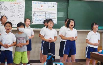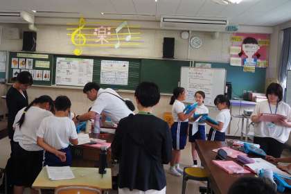 3・4年生の音楽の授業で授業研究を行いました。他校から音楽の指導員の先生をお招きして、音楽の授業を観ていただいてアドバイスを頂きました。まず、3・4年生の元気な歌声に圧倒されました。指導員の先生も絶賛でした。中金っ子が下校した後、先生たちで授業についての研究会を行い、先生たちも意見を出し合い勉強をしました。