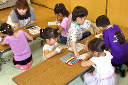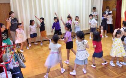 1年生が中金こども園の「夏祭り」に招待されて出かけていきました。自己紹介をし、ペアになった園児さんと楽しく、きんぎょすくいやピン倒し(ボーリング)、輪投げなどをを体験したり、みんなで楽しく踊りをしたりてきました。お土産ももらってきました。9人全員立派になった姿を見せてきてくれました。