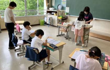 朝の中金小学校の様子です。それぞれの学年が、指示された活動をしっかり行っています。これは、中金小学校では当たり前の様子になっています。落ち着いた、楽しい学校です。