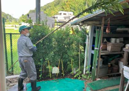 ハチの巣点検を行っていただきました。今回はハチの巣が校内に一つも無かったそうです。これで安心して学校生活が送れます。毎年、この時期に点検をしていただいています。そのおかげだと思います。木の多い中金小学校には、欠かせない安全点検です。本当に点検をしていただきありがとうございます。