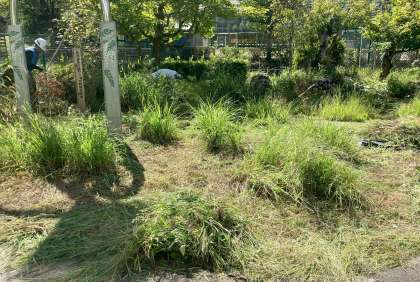 株式会社鈴鍵様に来ていただき、ビオトープが手入れされました。お手伝いに4年生が加わり、生物の生息し易い環境が整ってきました。4年生の子たちは、社員の方の指示のもと外来種であるオオアレチノギクとヌスビトハギの駆除を行いました。ビオトープの雑草の中にも外来種が生えてきており、これから在来種(植物・生物)のみの環境を中金小学校のビオトープに作っていこうと思います。