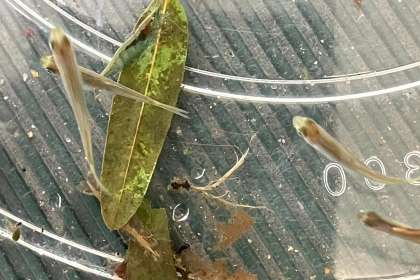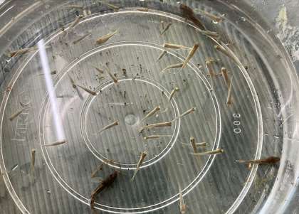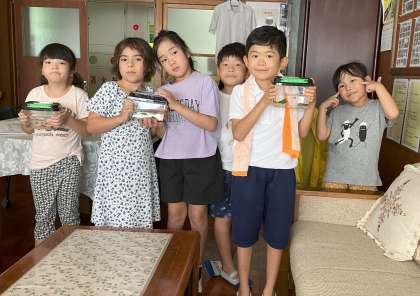 2年生が力石川にいる生き物を捕まえて、観察する授業を行っていました。まずは、川に入ってたくさん生き物を捕まえることからはじめて、講師の谷口先生に生き物について色々教えていただきました。捕まえた生き物は、教室で飼ったり、ビオトープに放ったりしました。