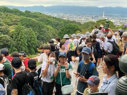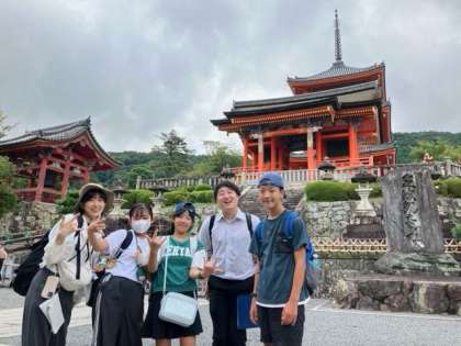 清水寺に来ています。曇り空ですが、雨は降らないという事です。みんな元気です。