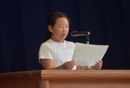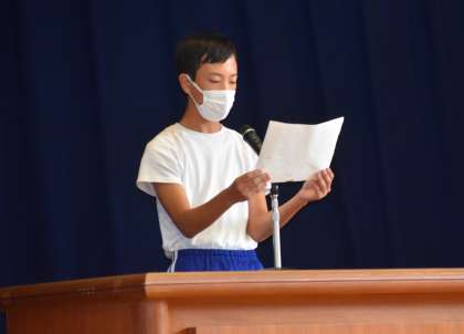 前期後期の切替式を体育館で行いました。まず素晴らしかったのは、体育館への入退場の仕方です。無駄話をする児童が本当にいません。とてもいい緊張感の中で、切替式が始まりました。次に何といっても代表児童のスピーチの素晴らしさに、何度も感動しました。表彰伝達を行い、校歌を歌い、後期の委員長会と副委員長、そして学級員の決意表明も立派でした。