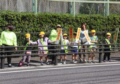 折り鶴大作戦は、今年で37回目です。交通安全を願ってずっと続いてきた行事です。みんなが交通安全の願いを込めて折った鶴は、メッセージカードと一緒に地域の人たちが集まる場所へ置き、そこを訪れた方々に持っていってもらいます。今年もカレンダーを作りました。ポスターや標語を募集し、選ばれた作品を載せています。そのカレンダーは中金小学校の学区の地域の全部の家に配られます。また、フェンスに掲示する横断幕やフラワーロードに掲示するポスターを今年も作っていただきました。これらの活動は、地域の方々の交通安全への啓発だけでなく、この活動に取り組む皆さんの心の中に「交通安全」がしっかり刻まれるために行っています。これからも皆さん自身交通安全に気を付けて、元気に楽しく暮らしていけるよう願っています。
