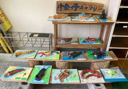 アート展で展示されていた作品を玄関に移動展示しました。お客さんを迎える玄関が素敵になりました。