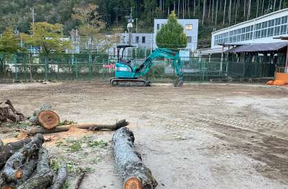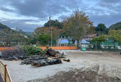 3本あった桜の内2本とお別れしました。寂しいですが、1本になった桜に頑張れという思いです。お別れした桜の木は、玄関に切り株として展示しようと思います。また、枝をコースターにして全校児童に配布したいと思います。