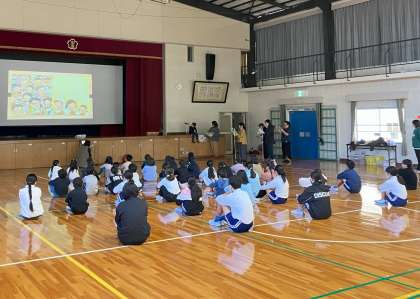 各教室で行う読み語りもとてもいいものですが、今日は体育館に全校が集まり、スクリーンに絵本を映し、読み語りスタッフの方たちが配役を決め、全児童に読み聞かせていただけました。昨年から始まった企画ですが、今回もとても素晴らしい企画となりました。体育館が温かい絵本の雰囲気に包まれました。来年もこのようなスペシャルバージョンを企画してもらえるといいと思いました。