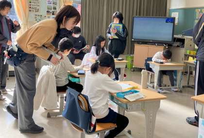 今日の3時間目、2年生が算数の授業を公開しました。先生方もいろいろな先生の授業を観て勉強します。今日の算数の授業は、チョコレートの数を九九を使って「はやく、かんたんに、せいかくに」求める授業でした。いろいろな答えの出し方が発表されたいい授業でした。姿勢意識週間ということもあり、いい姿勢で授業が受けれていることも関心しました。