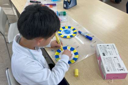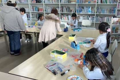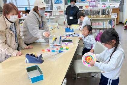 新年になって初めてのまちかど図書館でした。いつもボランティアの方たちに楽しい工作を教えてもらい、素敵な時間を過ごしています。今日は、紙のお皿を使った工作を作って楽しみました。お皿がくるくる回ってきれいな模様ができました。ボランティアの皆さん、いつもありがとうございます。今年もよろしくお願いします。