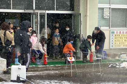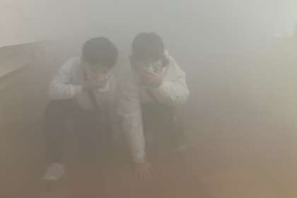 豊田市予防課の方たちにお越しいただき、防災の疑似体験をしました。防サイ君による地震体験、消火器を実際に使う消化体験、体に無害な煙を理科室に充満させての煙道避難体験をしました。。訓練中の中金っ子の態度は素晴らしく、有意義な3つの体験を行うことができた「中金防災の日」になりました。
