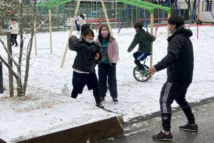 今日は、一日雪は解けそうもありません。中金っ子はそんな一日を雪投げなどで楽しんでいます。