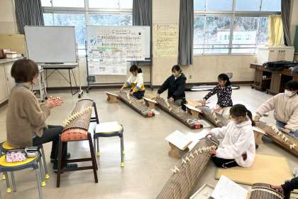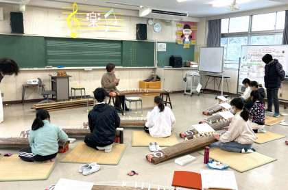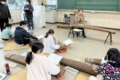 学校に楽器の音色や子供たちの元気な歌声があるのは、とてもいい雰囲気です。最近の中金小学校は、そんな学校になってきています。今日は、いつもとは違う楽器の音色が学校に響いていました。それは、お琴の音色です。とても豊かな気持ちにさせてくれる音色です。地域講師の方に教えていただいています。ありがとうございます。学習発表会が楽しみです。