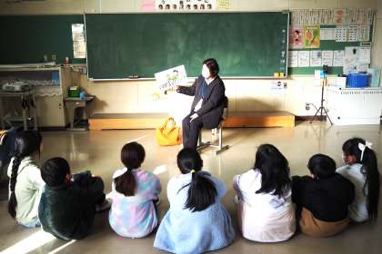 今回で13回目の読み語りです。今年度も残り2回となりました。今日読んでいただいた本は、1・2年生が「マとマとマとマ」3年生が「ねこのえきちょうさん たま」4年生が「おばあちゃんのえほうまき」「おもち」5・6年生が「ドーナツのあなのはなし」でした。今日は、3人のボランティアさんと司書さんに読み語りをして頂きました。ありがとうございました。