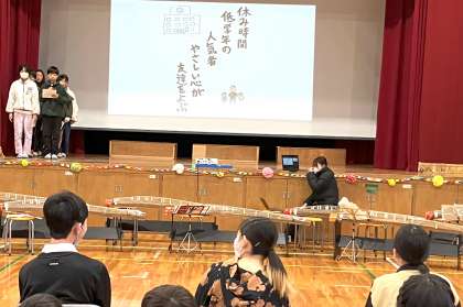 「6年生を送る会」を行いました。1〜5年生のみなさんの6年生に感謝する気持ちが伝わる心のこもった会となりました。各学年の出し物は気持ちのこもった素晴らしい物ばかりでした。何といっても5年生の頑張りは素晴らしかったです。この会の計画から 司会進行、思い出ムービーづくりまで中心になってやってくれました。来年度、新しい学校のリーダーとして5年生の人たちは、きっと頑張ってくれるだろうなあと頼もしく思っいました。こんな素晴らしい会ができたのも、6年生がこの1年間、学校のリーダーとして いつも頑張ってみんなのことを考えて行動してくれたからです。中金小学校は、本当に素晴らしい児童ばかりです。本当に立派でした。
