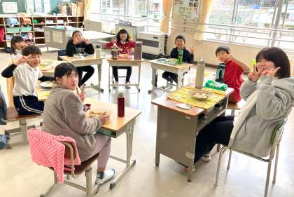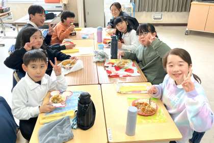 5、6年のお兄さんお姉さんが家庭科の授業の一環でカレーライスを作り後輩にふるまってくれました。登校時から「今日はカレー」と言って横断歩道を渡っていく中金っ子もいるくらい、みんなが楽しみにしている「中金カレーランチの日」。南山班で楽しくカレーライスを食べている雰囲気もとてもよかったです。とてもおいしいカレーライスでした。