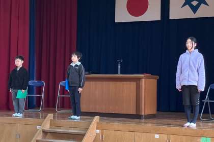 体育館に入ると素晴らしかった卒業式の余韻が、まだ残っている雰囲気の中、令和6年度の修了式を行いました。3名の代表スピーチに感動し、卒業生のような各種表彰の受け取り、そして、話を聞く姿勢。素晴らしい児童が育っています。すべてが終わり、一斉下校では、5年生の代表が最上級生としての自覚のもと全校児童をまとめ、程よい緊張感のもと大きな声で令和6年度最後の「さよなら」のあいさつができました。とてもいい雰囲気ですべてを終えることができました。