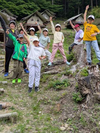 班の仲間と協力して探検ビンゴも無事に終了しました。無事にファミリー広場に帰還できたことを記念してパチリ。みんなとてもいい笑顔です。