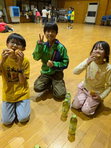 夜食、そして就寝です 公開日 2025/05/30 更新日 2025/05/30 学校行事 キャンプ1日目もあっという間に過ぎました。夜食を食べて、就寝の時間です。たくさん食べて、体を動かしたので、きっとぐっすり眠れることでしょう。小雨で少し濡れましたが、みんな本当に元気です。 5年 行事