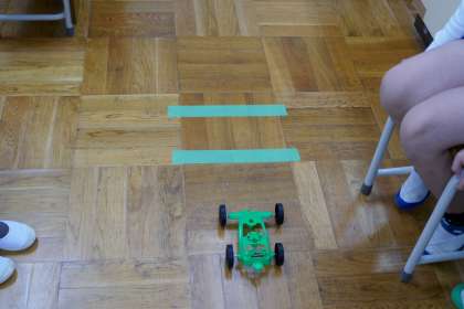 3年生の理科では、「ゴムと風の力のはたらき」について学習しています。先日の授業では、ゴムの力で動く車を使って、ゴールぴったりに止めるゲームに挑戦しました。子どもたちは順番に挑戦しながらコツをつかみ、最後には見事にゴールぴったりに止めることができるようになりました。