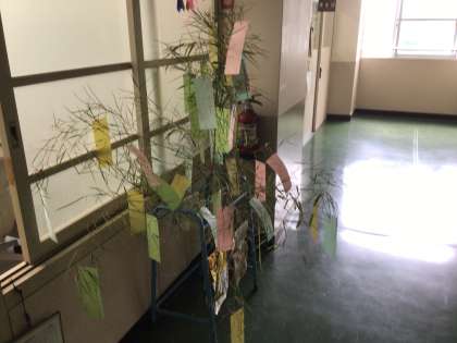 この日は七夕でもあり、児童たちはもちろん、先生たちも短冊に願い事を書きました。心のこもった願いがたくさん飾られました。