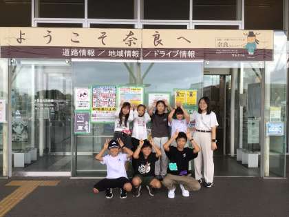 奈良県到着。針テラスで2回目の休憩です。空は少し曇っていますが、風が心地よく過ごしやすいです。バスの中で少し仮眠したり、ゆっくりDVDを見たりして、エネルギーをチャージできました。法隆寺に向かって出発します。