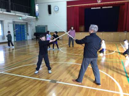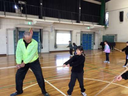 12月9日(火)より、1・2年生を対象に、中切棒の手保存会の皆様による「起倒流棒の手」の練習が始まりました。