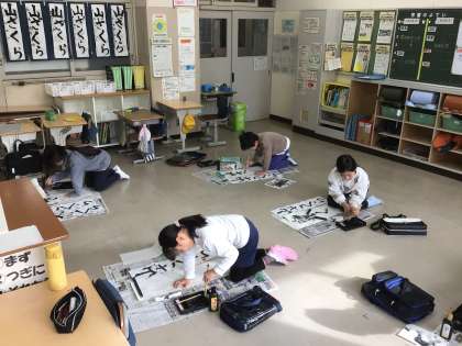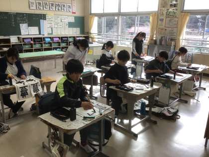 また、全校児童の書き初め作品は、2月7日(土)の学習発表会の際に、体育館後方で展示します。
