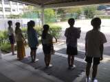 代表委員会による今月のめあての確認や全校児童で校歌を斉唱しました。