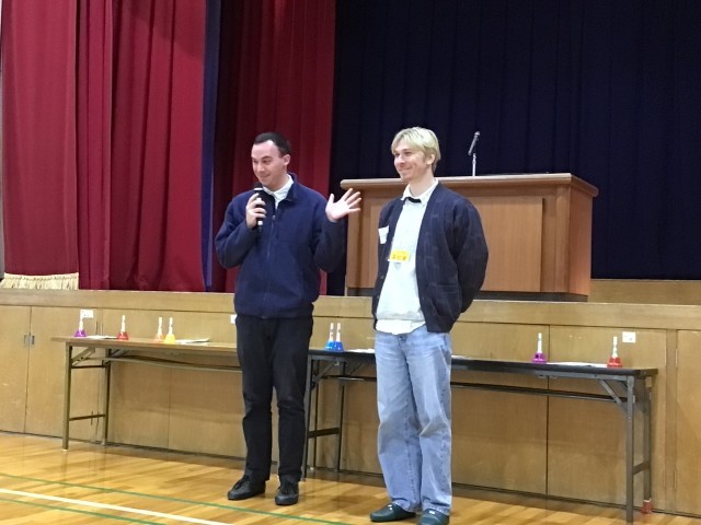 また、ALTのジェームズ先生のお友達であるトーマス先生が中金小学校に遊びに来てくださり、全校児童にご紹介しました。