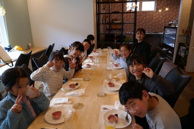 2月18日(水)、2年生が「町探検」の授業で野口方面へ出かけました。野口雨情の碑や、しゃくやく姫の塚に立ち寄り、神社で休憩をはさんだ後、ビストロ ルシアに向かいました。お店の方には、2年生が事前に考えてきた「お店をしていて大変なことは何ですか?」「おすすめのメニューは何ですか?」など、たくさんの質問をしました。どの質問にも丁寧に答えてくださいました。そして、お楽しみのデザートタイム! ガトーショコラとバニラアイスクリーム、ドリンクを用意していただき、みんなそのおいしさに「おかわりしたい!」と大喜びでした。帰りはバスに乗って学校へ。