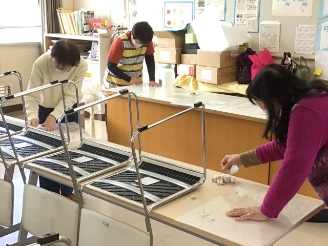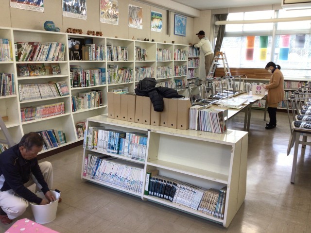 3月11日(水)、図書館司書の杉山さんを中心に、図書ボランティアの皆さんのご協力を得て、図書室の清掃を行いました。ぞうきんがけや掲示物の整理など、細かなところまで丁寧に整えていただきました。また、普段は手が届かない大きな本棚の上まで、脚立に乗って丁寧にきれいにしてくださいました。