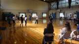 リズムに合わせて体を動かすウォーミングアップのあとは、レッツ、中金ダンス!先生...