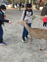 奈良公園は学校別で行動です。正倉院は遠くから外壁を眺めました。鹿せんべいを買...