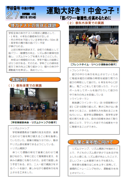 中金小学校の体力向上に関する取組をまとめたパンフレットをホームページに掲載しま...