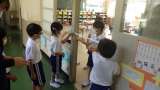 1年生が、教室の入り口に紙テープを当てていました。「何をしているの。」と聞くと...