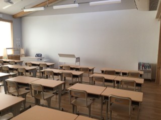 前と後ろが全面ホワイトボードの新しい教室です。豊田市でも先進的な取り組みをしています。