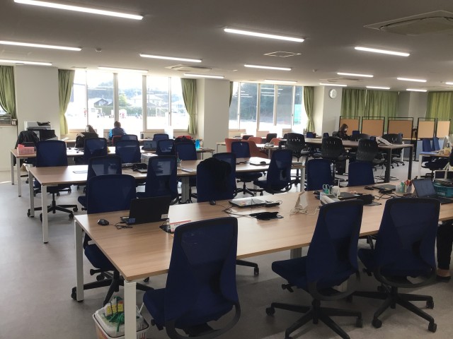 令和7年度より、新しい校舎が増築されました。職員室はフリーアドレス制度を導入しています。 |