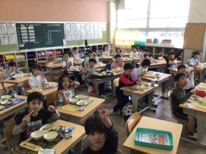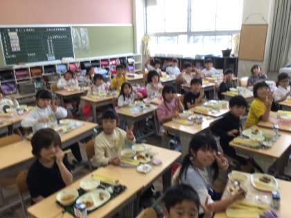 給食の準備が早くなり、美味しく食べています♪