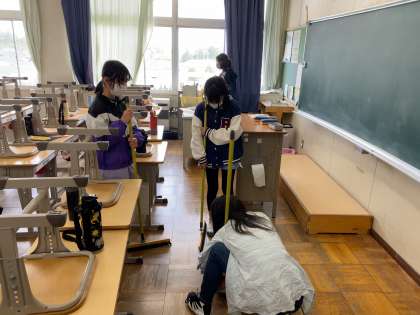 今日から各掃除場所での掃除が始まりました。落ち着いて丁寧に掃除する姿は、下級生のお手本となるくらいすてきでした。