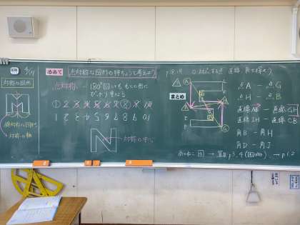 今日は点対称な図形について学習しました。線対称な図形と比べながら、特徴について考えました。