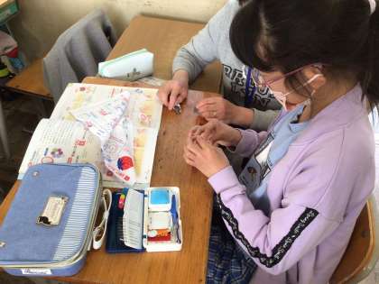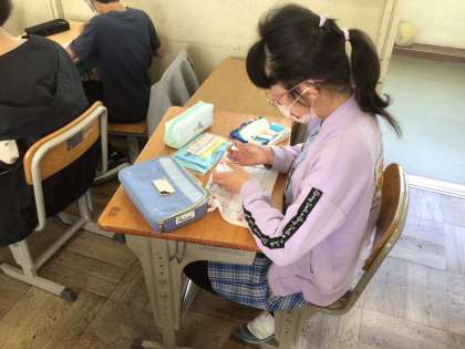 今回は手縫いの練習をしました。