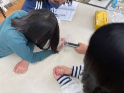 気体検知管や石灰水を使って、すう空気とはいた空気の違いにせまりました。