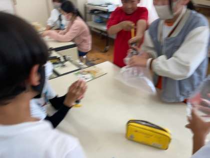 気体検知管や石灰水を使って、すう空気とはいた空気の違いにせまりました。