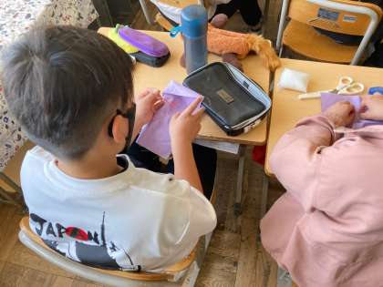 野外学習に向けて、てるてる坊主をつくりました。 手伝っていただいた保護者の方、ありがとうございました。