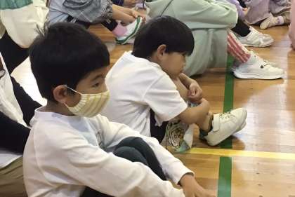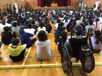 7・8・9・10組 2年生ぶり体育館での全校集会 公開日 2023/04/27 更新日 2023/04/27 各学年から 新型コロナウイルス感染防止のために およそ2年間オンラインで行っていた全校集会 およそ2年ぶりに体育館で行うことができました。 今回は児童会役員や各委員会の委員長、学級委員の任命式 特別支援学級子どもたちも 交流学級の列に入り 代表になった児童に拍手を送ったり 校長先生の話をしっかり聴いたり 素敵な態度で集会に参加することができました。