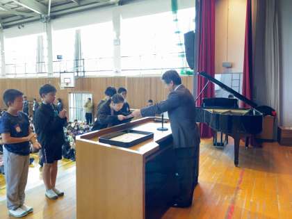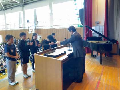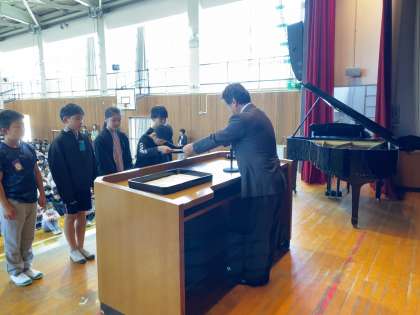任命集会で、今年度の児童会役員が任命されました。