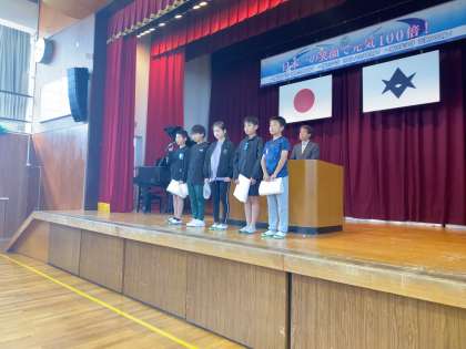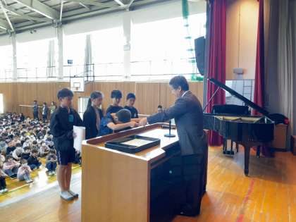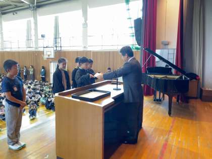 任命集会で、今年度の児童会役員が任命されました。