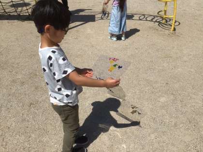 完成した作品を日の光に透かせてどんな影が生まれるのか