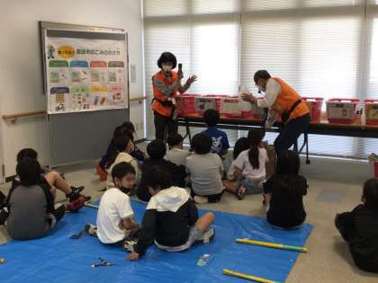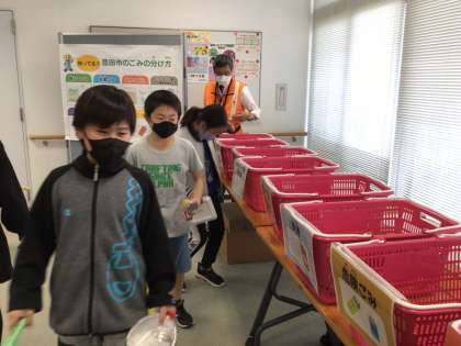 エコットでの様子です。ごみ釣りをしました。釣ったごみを分別して、何ごみに分類されるのか学習しました。